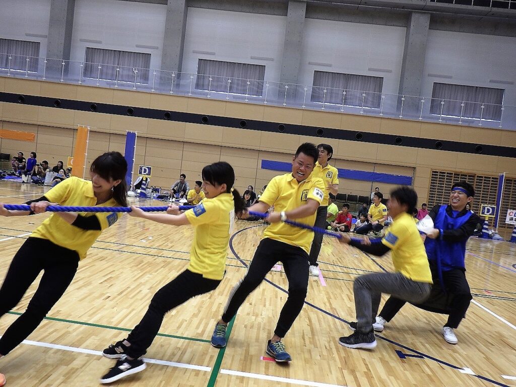 地引網や、潮干狩り、昨年は20周年で立食パーティでしたが今回はなんと・・・大運動会!!!さて、今回の大運動会ですが、建築地別に「赤・緑・黄色・青」の4つのグループに分かれて玉入れ、1つの棒を横並びに持ちコーンを回って戻ってくる台風の目リレーや、大人から小さなお子様までガチンコのフリースロー対決、四つのブロックがそれぞれに引き合う十字綱引きなど沢山の種目をお客様とスタッフとで盛り上がりながら楽しみました(^o^)