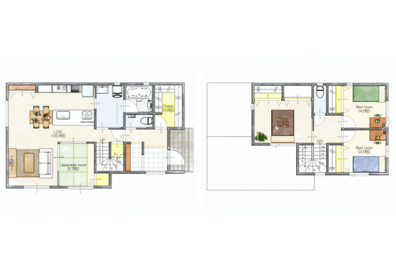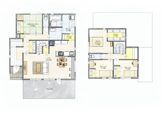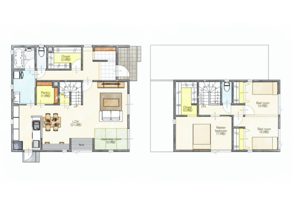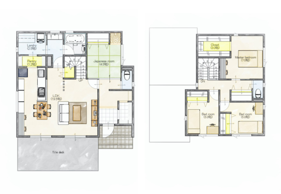 ワークスペース 二階建て 収納スペース 和室 家事ラク動線 将来間仕切り 来客動線