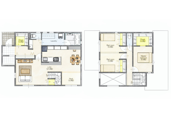 二階建て 収納スペース 家事ラク動線 将来間仕切り 畳コーナー 趣味部屋 階段下収納