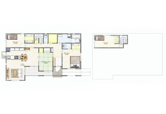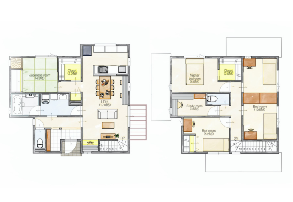 ワークスペース 二階建て 収納スペース 和室 将来間仕切り 書斎 来客動線